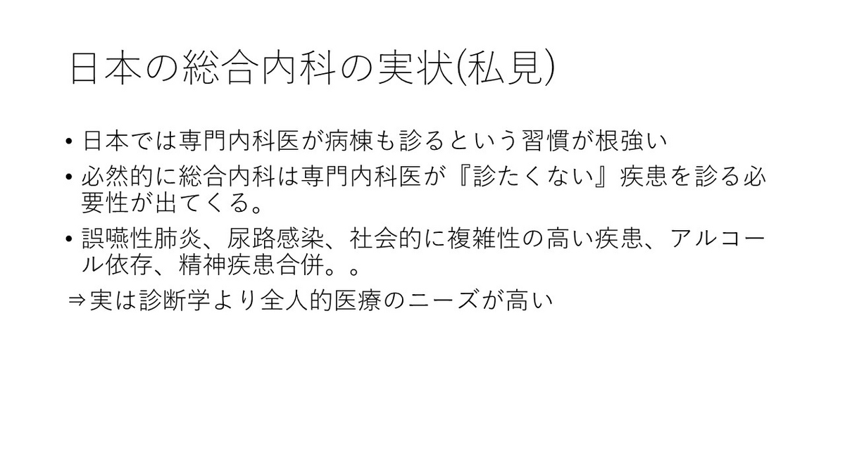 小林先生もそうですが、日本の一般内科よりも米国のプライマリ・ケア医のほうがカバーすべき内容が多いように感じます。