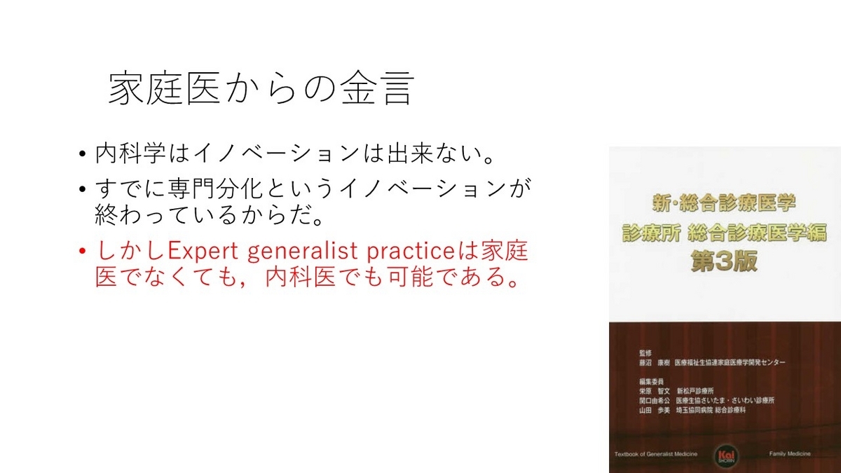一方で、総合診療専門医のみでは内科を深めることは難しいかもしれない。