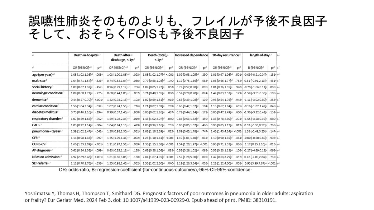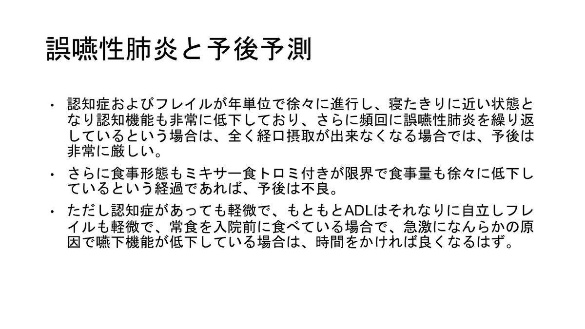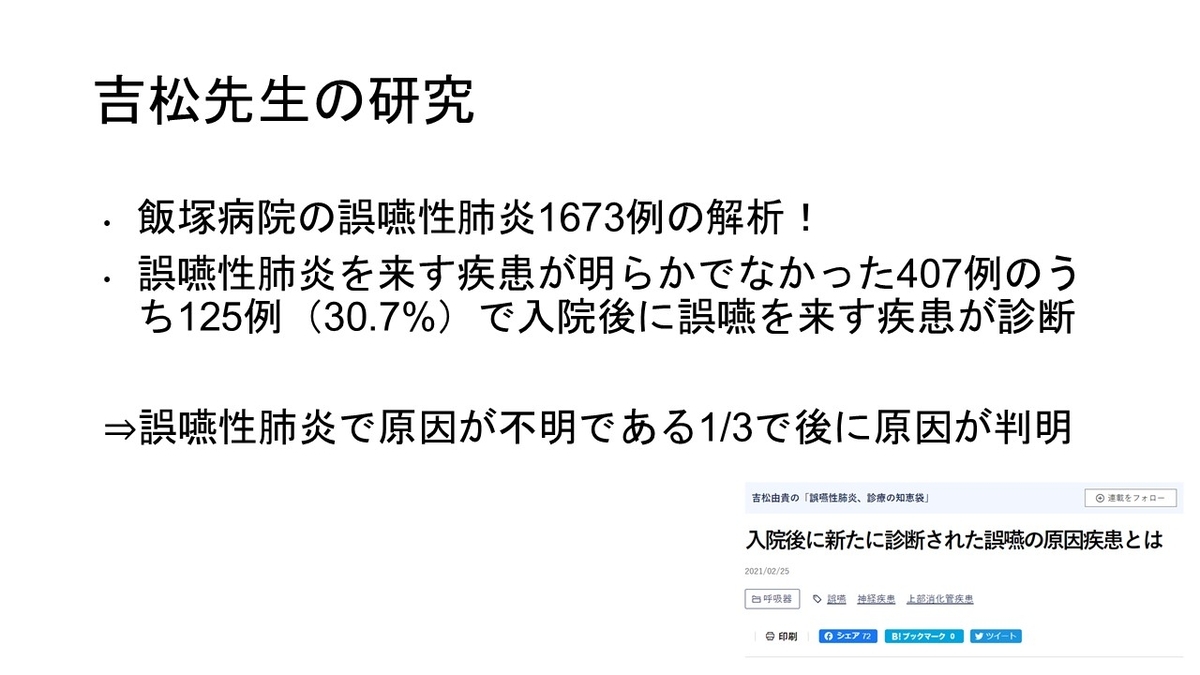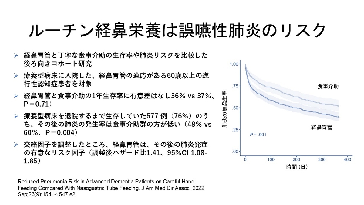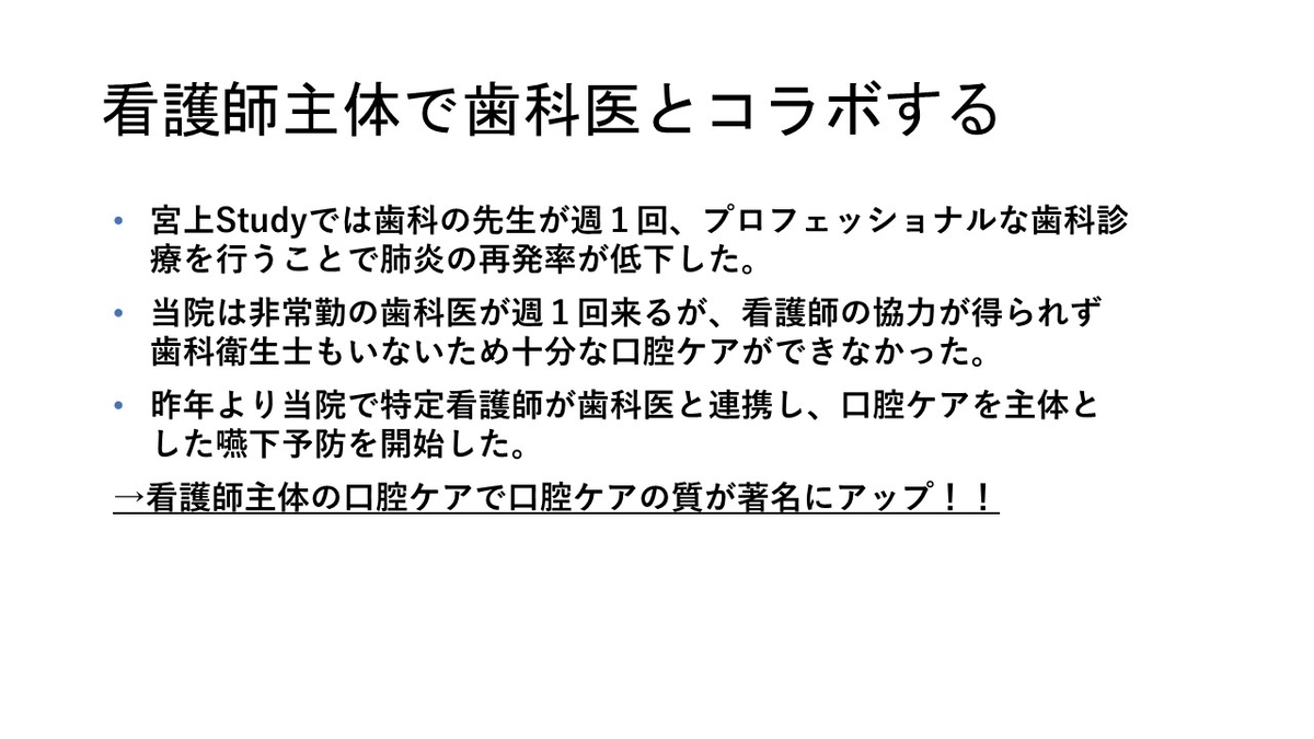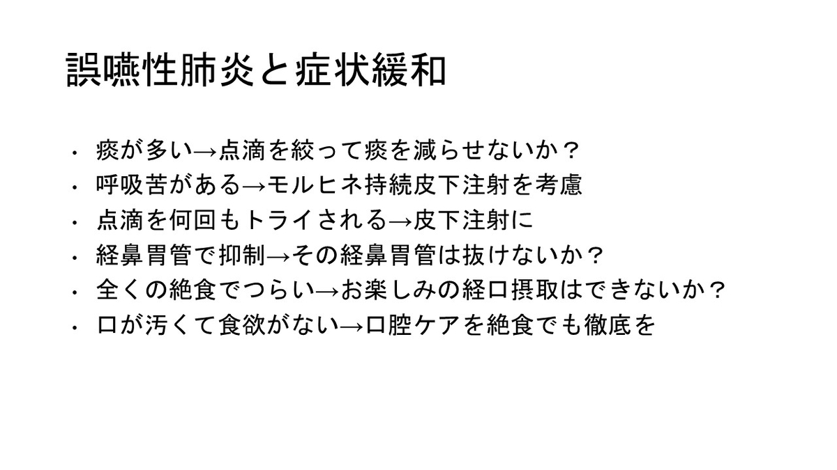 ずっと日本の課題として思っているのが、有料老人ホームや老健、特養から患者がすぐに病院に受診しがちという問題です。少し酸素が必要な誤嚥性肺炎なら、これらの施設で酸素をしながら治療するほうがQOLも高いのではと思います。もっとこれらの施設で点滴治療をする、あるいは施設看取りということに関して加算をつけることが望ましいのではと強く思いました。